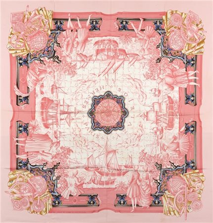 Foulard in seta "Azulejos" Catherine Baschet 1999, nei toni del rosa (lievissimi difetti) -