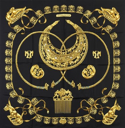 Foulard in seta "Les Cavaliers d'Or", Vladimir Rybaltchenko 1975, fondo nero