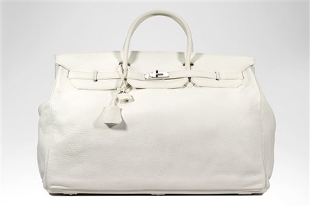 Raro borsone Birkin in pelle fjord bianca con interno in pelle e tessuto, 2007. Dustbag originale (cm 55x27) (lievi segni d'uso) -