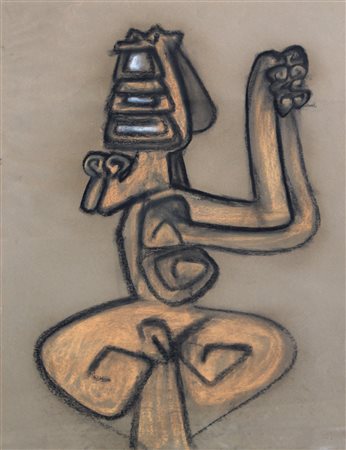 Lot 23 CRIPPA Roberto, Totem 1957 olio su masonite cm. 45.6 x 35.5, . Autentica del figlio Roberto Crippa Jr. su fotografia. Firma "Crippa" (in basso a destra)