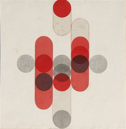 Lot 6 NANGERONI Carlo, Struttura a elementi scorrevoli 1969 acrilico su tela cm. 45 x 45, . . Firma, luogo, data, titolo, tecnica "Carlo Nangeroni, Milano, 1969, L. seriali. Struttura e elem. scorrevoli, colori acrilici";