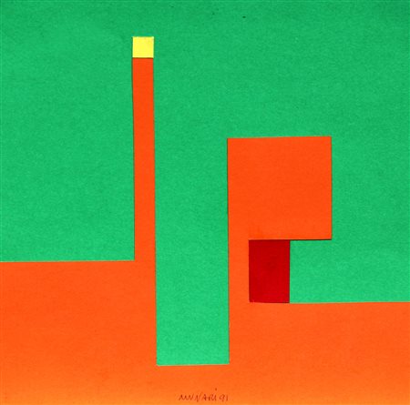 Lot 8 MUNARI Bruno, Senza titolo 1991 collage su cartoncino cm. 20 x 20, . Autentica a cura del figlio Alberto Munari. Firma, data "Munari, 91" (in basso al centro)