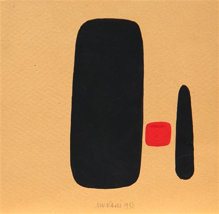 Lot 10 MUNARI Bruno, Senza titolo 1950 tecnica mista su cartoncino cm. 18 x 18, . Autentica a cura del figlio Alberto Munari. Firma, data "Munari, 950" (in basso al centro)