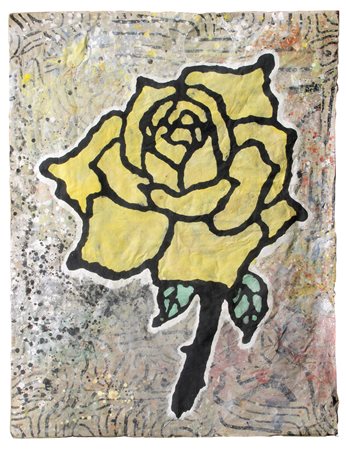 Lot 15 BAECHLER Donald, Yellow rose 2009 gesso, flashe e collage di giornale su carta cm. 132 x 101.5, V. Coen "Donald Baechler", Pieve di Cento, 2011, p. 42, ill.. . Iniziali, data "D.B., 2009" (in basso a destra)
