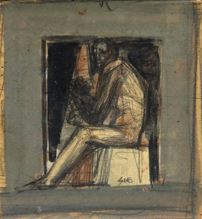 Lot 19 SIRONI Mario, Nudo seduto 1940 tecnica mista su carta intelata cm. 13.5 x 12, . . Firma "Sir" (in basso a destra)