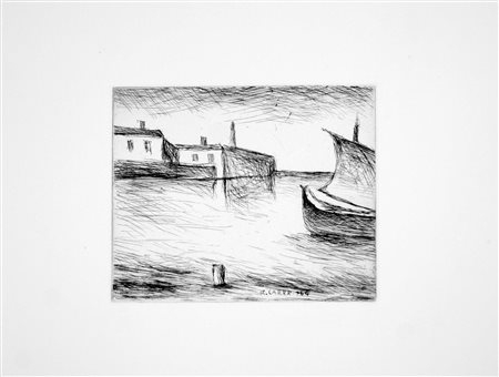 Lot 4 Carlo Carrà Acquaforte Paesaggio 65x46 Senza titolo 1963 Esemplare 21/102 Edizioni Prandi, Stamperia Il Bisonte