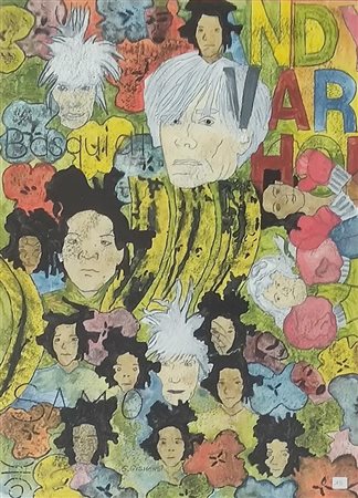Lot 17 G. Gismondi Pennarelli colorati su carta 75x55 Basquiat