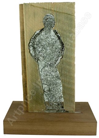 Lot 24 Mario Ceroli Scultura in legno vetro e metallo h. 44 Senza titolo