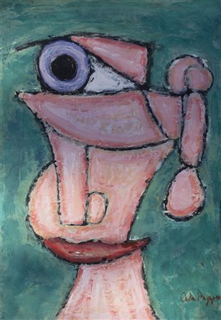 Lot 13 Ruggiero Antonio Olio su cartone 70x50 Faccia rosa occhio blu 2003
