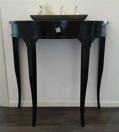 Lot 1 CONSOLE A DEMI LUNE IN LEGNO CON SMALTO NERO CM.80X40 H.CM.81