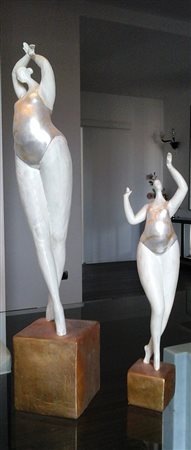 Lot 4 COPPIA DI SCULTURE IN CERAMICA A SOGGETTO FIGURE FEMMINILI H. CM.38 E 55