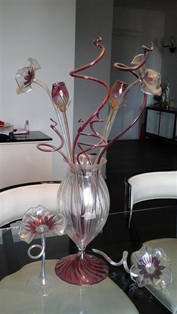 Lot 7 TRE VASI IN VETRO LA MURRINA DI CUI UNO CON FIORI IN VETRO H.MAX. CM. 70