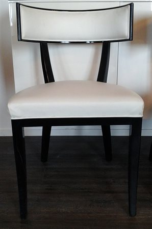 Lot 11 DIECI SEDIE SERIE DECO' IN LEGNO SMALTATO NERO E PELLE BIANCA