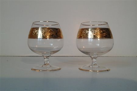 Lot 18 COPPIA DI BICCHIERI DA COGNAC PROFILATI E DECORATI IN ORO SECCHINO O ZECCHINO