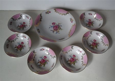 Lot 19 SERVIZIO DA DESSERT PER SEI PERSONE IN PORCELLANA KUNST REHAU BAVARIA DECORATO CON ROSE E ORO ZECCHINO