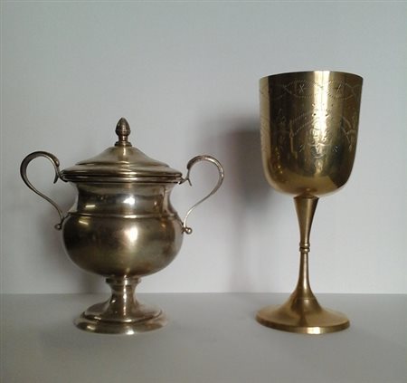 Lot 23 ZUCCHERIERA IN ARGENTO 800 (GR.223) E CALICE IN METALLO DORATO