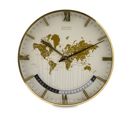 Lot 12 KIENZLE - World Time, orologio in ottone dorato, con ore del mondo, apertura per le 24 ore e indicazione del giorno e della notte.
