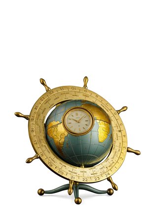 Lot 15 ANGELUS - Stazione meteorologica a forma di mappamondo con timone navale in ottone dorato e smalto verde, 8 giorni di riserva di carica.. Marchio/Brand: Angelus