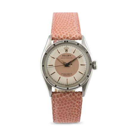 Lot 24 ROLEX - Oyster Perpetual "Ovettone" ref. 6103 in acciaio con quadrante personalizzato successivamente e cinturino abbinato, anni '60. Marchio/Brand: Rolex