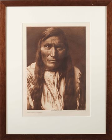 Edward Sheriff Curtis (1868-1952), Head Dress Atsina - From The North American Indian 1908. photogravure, cm 39x29,8 etichetta al retro