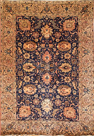 Lot 3 Tappeto persiano fondo blu con fitta decorazione a tralci fioriti nei toni del rosa cm 290x200