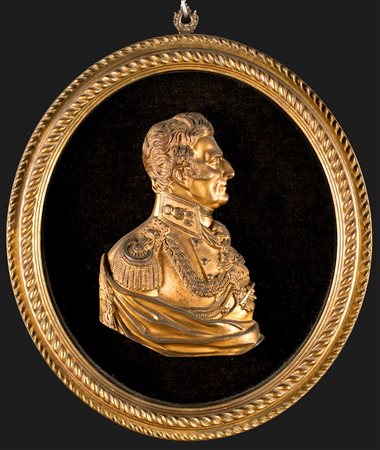 Lot 16 Bassorilievo in bronzo dorato, XIX secolo raffigurante un ritratto di ufficiale, applicato su ovale in cornice cm 19x12 - con la cornice: cm 31x28