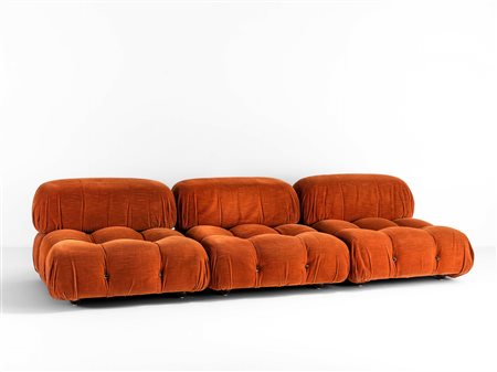 Lot 146 Mario Bellini, Divano mod. Camaleonda composto da tre moduli. Struttura in legno e rivestimenti in tessuto., Etichetta originale., Prod. B&B, Italia, 1970 ca., W. 270 - D. 90 - H. 67 cm