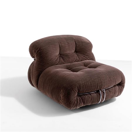 Lot 156 Afra e Tobia Scarpa, Poltrona mod. Soriana con struttura in tubolare cromato e rivestimenti in tessuto. Disegno originale vincitore del Compasso D'oro nel 1969., Prod. Cassina, Italia, 1970 ca., W. 85 - D. 90 - H. 65 cm, Bibliografia, G. Gramigna, Le Fabbriche del design, I produttori dell’arredamento domestico in Italia 1950-2000, p. 83, Allemandi, 2007