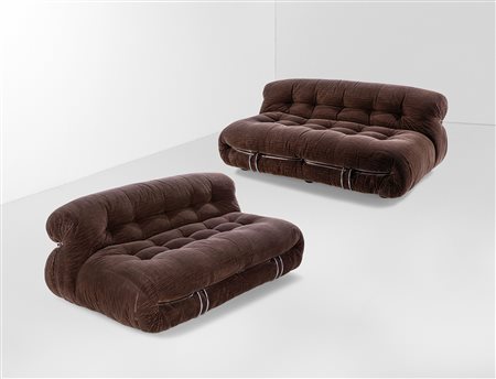 Lot 157 Afra e Tobia Scarpa, Coppia di divani mod. Soriana struttura in tubolare cromato e rivestimenti in tessuto. Disegno originale vincitore del Compasso D'oro nel 1969., Prod. Cassina, Italia, 1970 ca., , W. 170 - D. 100 - H. 65 cm, Bibliografia, G. Gramigna, Le Fabbriche del design, I produttori dell’arredamento domestico in Italia 1950-2000, p. 83, Allemandi, 2007