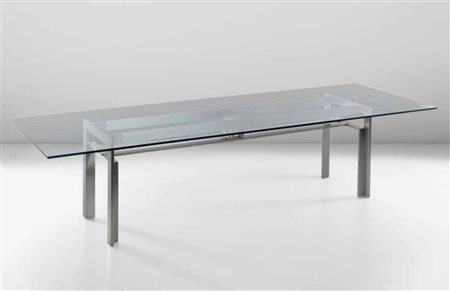 Lot 158 Carlo Scarpa, Grande tavolo mod. Doge con struttura in acciaio e piano in vetro., Prod. Cassina, Italia, 1968, W. 306 - D. 102 - H. 72 Cm, Bibliografia, G. Gramigna, Repertorio del design italiano 1950-2000, p. 160, Allemandi, 2003.