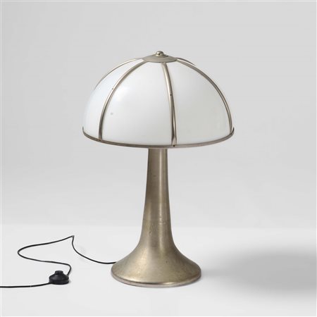 Lot 159 Gabriella Crespi, Lampada da tavolo mod. Fungo con struttura in ottone nichelato e diffusore in ottone nichelato e perspex., Firma Incussa sul paralume., Prod. Italia, 1970 ca., W. 50 - D. 50 - H. 70 cm, Bibliografia, (a cura di) C. Cunacchia, Gabriella Crespi, Il segno e lo spirito, Mondadori Electa, 2011.