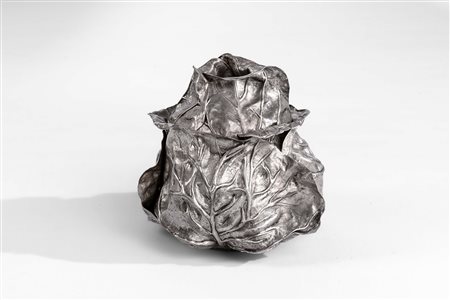 Lot 163 Gabriella Crespi, Scatola in metallo argentato., Firma incussa., Proveniente dagli arredi dello showroom Crespi di palazzo Cenci - Roma., Prod. Italia, 1970 ca., W. 27 - D. 25 - H. 24 Cm