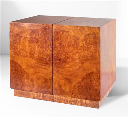 Lot 165 Gabriella Crespi, Mobile contenitore apribile mod. 2026 con struttura in legno e radica., Proveniente dagli arredi dello showroom Crespi di palazzo Cenci - Roma., Prod. Italia, 1972, Chiuso: cm 56x37x45; Aperto: cm 74x28x45