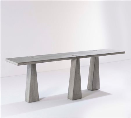 Lot 170 Angelo Mangiarotti, Grande consolle mod. Incas in pietra Serena con incastro a gravità., Prod. Skipper, Italia 1970 ca., W. 220 - D. 40 - H. 72 cm, Bibliografia, G. Gramigna, Repertorio del design italiano 1950-1980, p. 456, Mondadori, 1985.