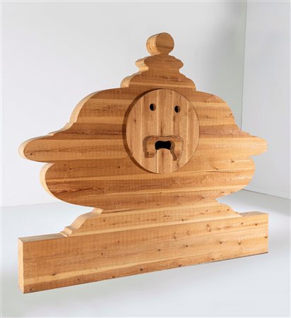 Lot 172 Mario Ceroli, Testata per letto mod. Bocca della Verità della serie Mobili della Valle con struttura in legno., Prod. Poltronova, Italia, 1974, W. 230 - D. 16 - H. 194 cm, Bibliografia, G. Gramigna, Repertorio 1950-1980, p. 406, Mondadori, 1985 cm 230x205x175