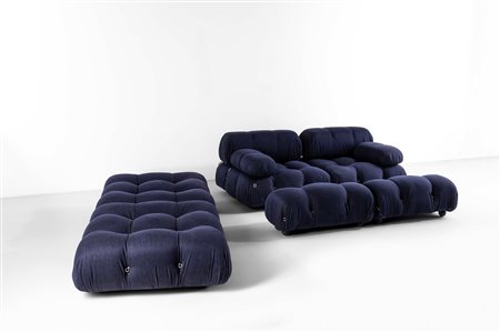 Lot 174 Mario Bellini, Divano mod. Camaleonda composto da quattro moduli e due pouf. Struttura in legno e rivestimenti in tessuto., Etichetta originale., Prod. B&B, Italia, 1970 ca., Modulo singolo: cm 92x95x65 Pouf: cm 92x33x36, Bibliografia, G. Gramigna, Repertorio del design italiano 1950-2000, p. 188, Allemandi, 2003.