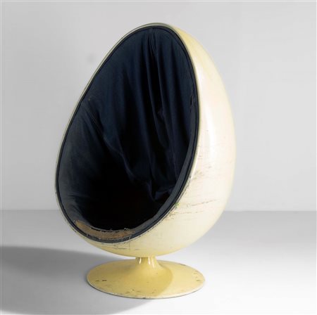 Lot 187 Henrik Thor-Larsen, Poltrona mod. Ovalia con scocca in fibra di vetro e rivestimenti in tessuto. , Prod. Danimarca, 1970 ca., W. 90 - D. 65 - H. 135 cm