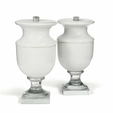 Lot 1 Coppia di lampade "Maurice" in vetro soffiato, color bianco lattimo, in vetro di Murano modello esclusivo eseguito dalla Vetreria Salviati, H. 47 cm