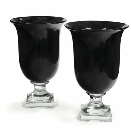 Lot 5 Coppia di lampade modello "Luminator" in nero, in vetro di Murano modello esclusivo eseguito dalla Vetreria Salviati, H. 49 cm