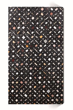 Lot 6 Piano a mosaico, XX secolo, fondo nero con inserti a commesso di marmi antichi policromi, W. 143 - H. 80 cm