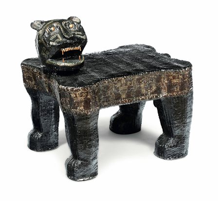 Lot 7 Panca in forma di tigre in paglia ebanizzata e dipinta. Arte etnica, XX secolo, cm 65x44x60