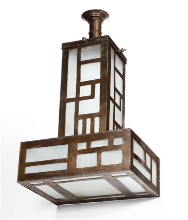 Lot 15 Lampadario in ottone e vetro, H. 70 cm