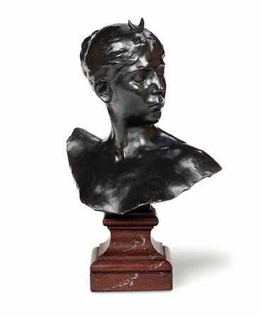 Lot 20 Alexandre Falguiere (1831-1900), Busto di Diana cacciatrice, firma incisa alla base. Su base in marmo rosso, nel lotto anche colonna in legno h cm 127, H. 34 cm