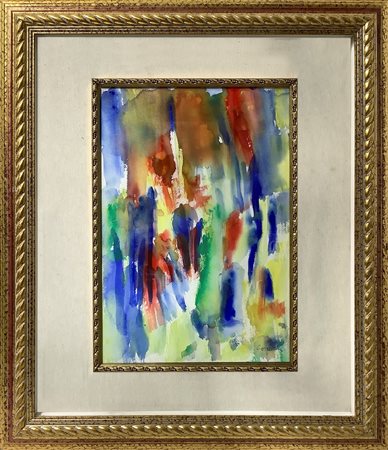 51x36 cm, in cornice 84x74 cm Carnevale Acquarello su carta Certificato su foto dell'artista a mezzo Galleria Giovanni Di Summa. Firmato in basso a destra e sul retro. -