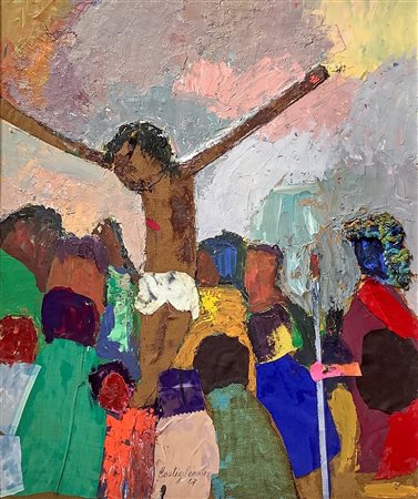 60x50 cm, in cornice 76x66 cm 1967 Crocifissione Dipinto a olio su masonite firmato Castiglione e datato 1967. -