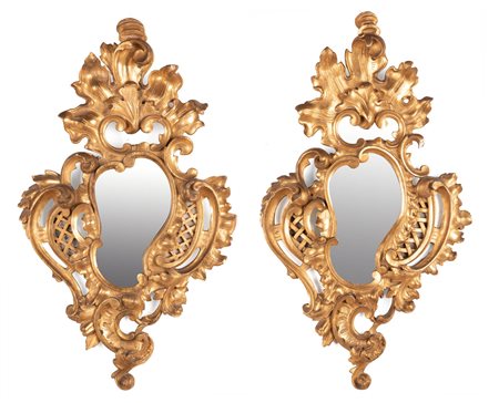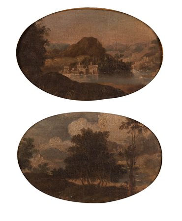 Olio su tela applicato su tavola cm 16,5x25 ovali Cornici in legno dorato di tipo Salvator Rosa a due ordini di intaglio XVIII secolo -