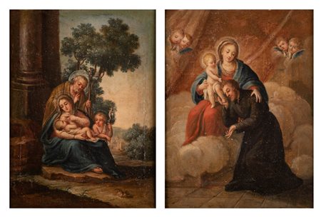 Coppia di dipinti raffiguranti "Riposo dalla fuga in Egitto" e "Madonna con Bambino e Sant'Ignazio di Loyola"