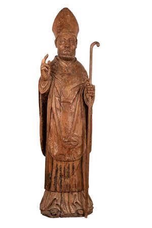 Legno intagliato con tracce di policromia altezza cm 132 Mancanze -