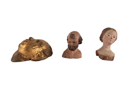 Legno intagliato e dorato / Legno intagliato policromo putto cm 16,5x12 / busto maschile cm 12 / busto femminile cm 13 -