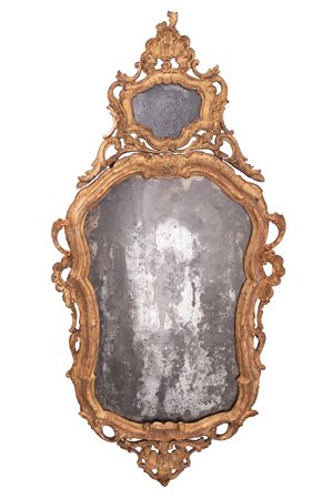 Legno intagliato e dorato cm 126x62 Specchio originale inciso con figura di Diana. Difetti. -